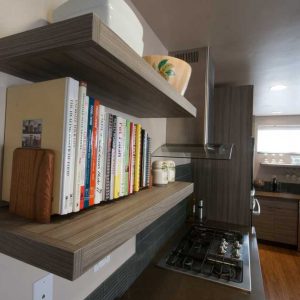 The project is a 900 SF open layout outdoor kitchen, guest bedroom and full bathroom. The key features throughout the project are the grand openings with massive folding doors that open out onto a covered terrace laThe floor plan represents a very modern feng shui: from the front courtyard to the floating stairs. The layout minimizes the amount of hallways and provides a little corner for the kitchen with access into the garage. The kitchen cabinets implement a reclaimed plastic material into the cabinets which mean that the cabinets are more environmentally firendly. The ceiling in the living room is open to the rafters above to indicate an open feel. As you make your way to the backyard, there is a fountain against the house and an open area lined with planter beds. The second story separates the two bedrooms with a full bathroom accessible through the upstairs master bedroom walk-in closet. The upstairs master bedroom has direct access to the second story balcony and a large walk-in closet.
